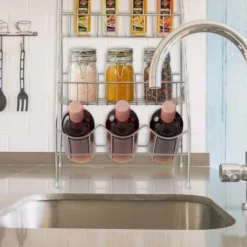 - Flaschenhalter: Bis zu 3 Flaschen im Küchenregal liegend lagern – Ideal für Öl, Essig und vieles mehr