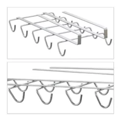 10x Tassenaufhänger für Schrank oder Regal Der Platz in der Küche ist oft rar gesät und Tassen im Schrank müssen unübersichtlich gestapelt werden. Eine clevere Aufbewahrungslösung bietet Ihnen dieser Tassenorganizer aus Metall. Nutzen Sie den Stauraum in Ihrem Küchenschrank mit dem praktischen Tassenhalter optimal aus und hängen Sie Teetassen oder Kaffeebecher übersichtlich in Zweierreihe auf. Dazu wird die Tassenhalterung am Schrank- oder Regalbrett eingehängt und kann bei Bedarf jederzeit wieder entfernt werden.