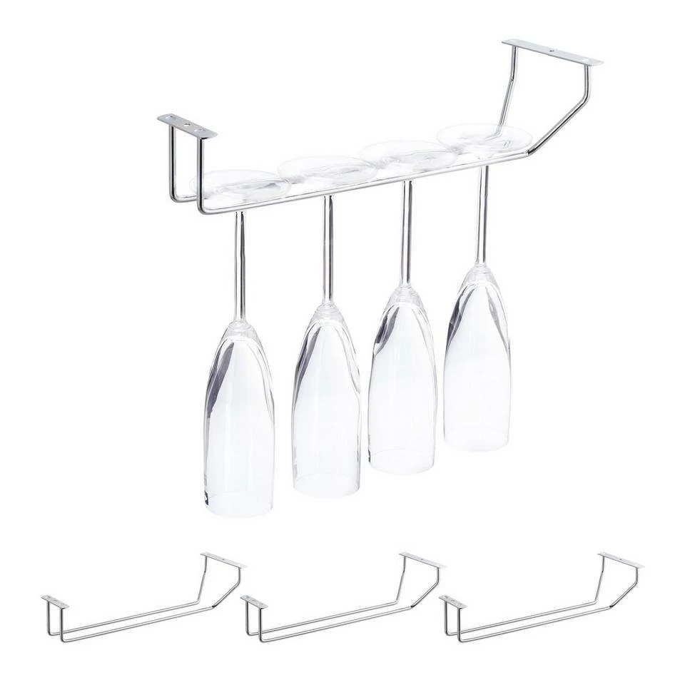 Weinglasschiene für Küche oder Bar Ob Weingläser, Biergläser oder Sektgläser – Bewahren Sie mit dieser Gläserschiene die unterschiedlichsten Stielgläser hängend auf und sparen Sie so Stellfläche im Küchenschrank. Die platzsparende Weinglas-Halterung in Edelstahl-Optik wird mit 2 Schrauben an der Decke oder unter dem Hängeschrank montiert und macht in der Küche eine ebenso gute Figur, wie in Bars oder Restaurants. Ihre Gläser sind mit dem Glasaufhänger nicht nur sicher verstaut, sondern werden auch gekonnt in Szene gesetzt.