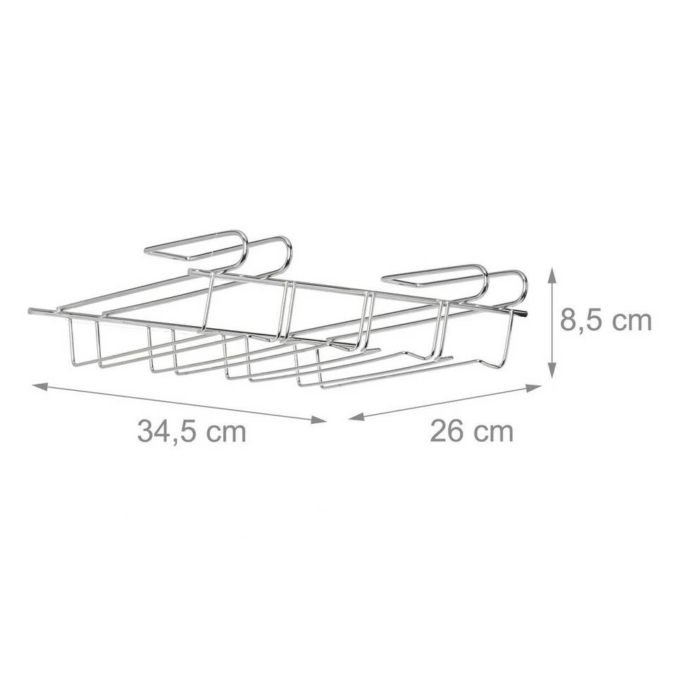 - Details: 4-reihige Weinglas-Halterung aus verchromtem Eisen – Maße H x B x T: ca. 8,5 x 34,5 x 26 cm