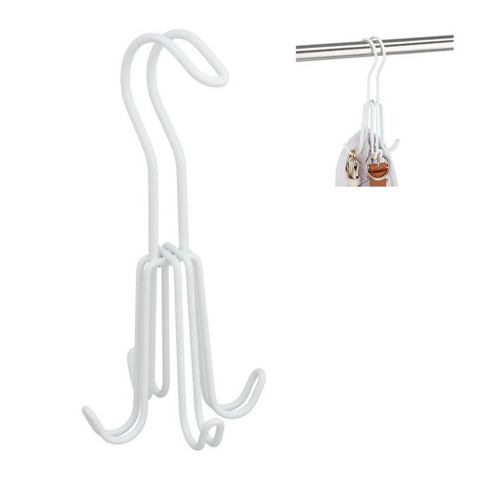 Weißer Gürtelbügel mit 4 Haken für Accessoires Accessoires haben häufig keinen festen Platz im Kleiderschrank und sind immer schwierig zu finden. Mit diesem Gürtelhalter sind nicht nur Gürtel, sondern auch Handtaschen, Krawatten oder Schals übersichtlich aufgehängt und leicht erreichbar. Besonders Accessoires aus empfindlichen Materialien profitieren dabei von der Gürtelaufbewahrung, da sie nicht unnötig zusammengerollt oder geknickt werden müssen. Durch seinen Haken kann der Gürtel Organizer bequem an der Kleiderstange aufgehängt werden.