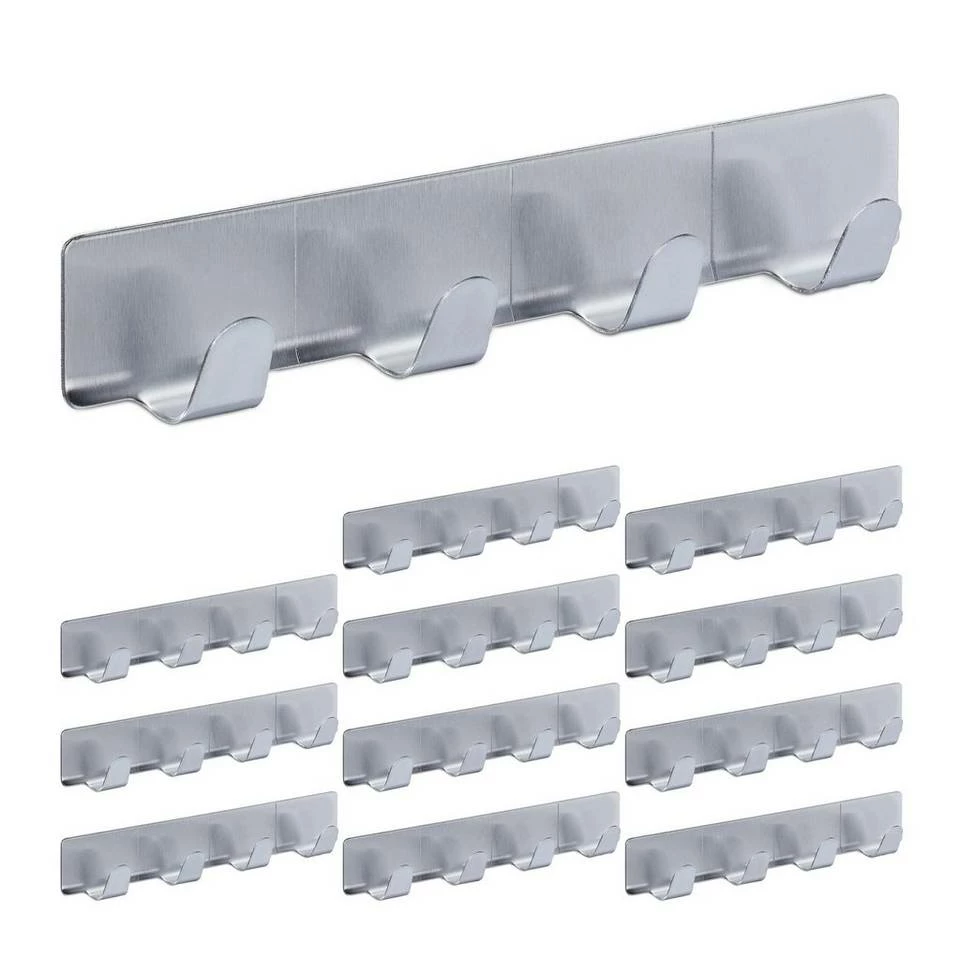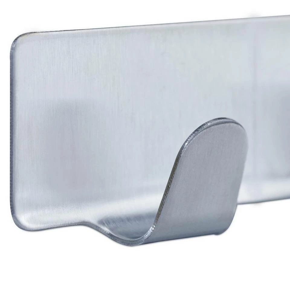 12 moderne Handtuchhaken ohne Bohren Ganz ohne Bohren lassen sich diese Klebehakenleisten an der Wand & Tür von Küche, Bad oder Flur anbringen. Dafür müssen Sie lediglich die Schutzfolie auf der Rückseite der Mehrzweckhaken lösen. Im Handumdrehen schaffen Sie mit den Edelstahlhaken so praktischen Stauraum für Handtücher, Waschlappen, Geschirrtücher, Bademäntel und vieles mehr. Im Eingangsbereich hängen Sie an den Wandhaken Ihre Schlüssel griffbereit auf. Das matte Design der Klebehaken sorgt dabei überall für einen modernen Touch. Hinweis: Um optimalen Halt zu erreichen, säubern Sie die Oberfläche von Wand oder Tür vor dem Anbringen. Drücken Sie die Hakenleisten nach dem Abziehen der Schutzfolie fest an und warten Sie etwa 24 Stunden, bis Sie etwas anhängen.