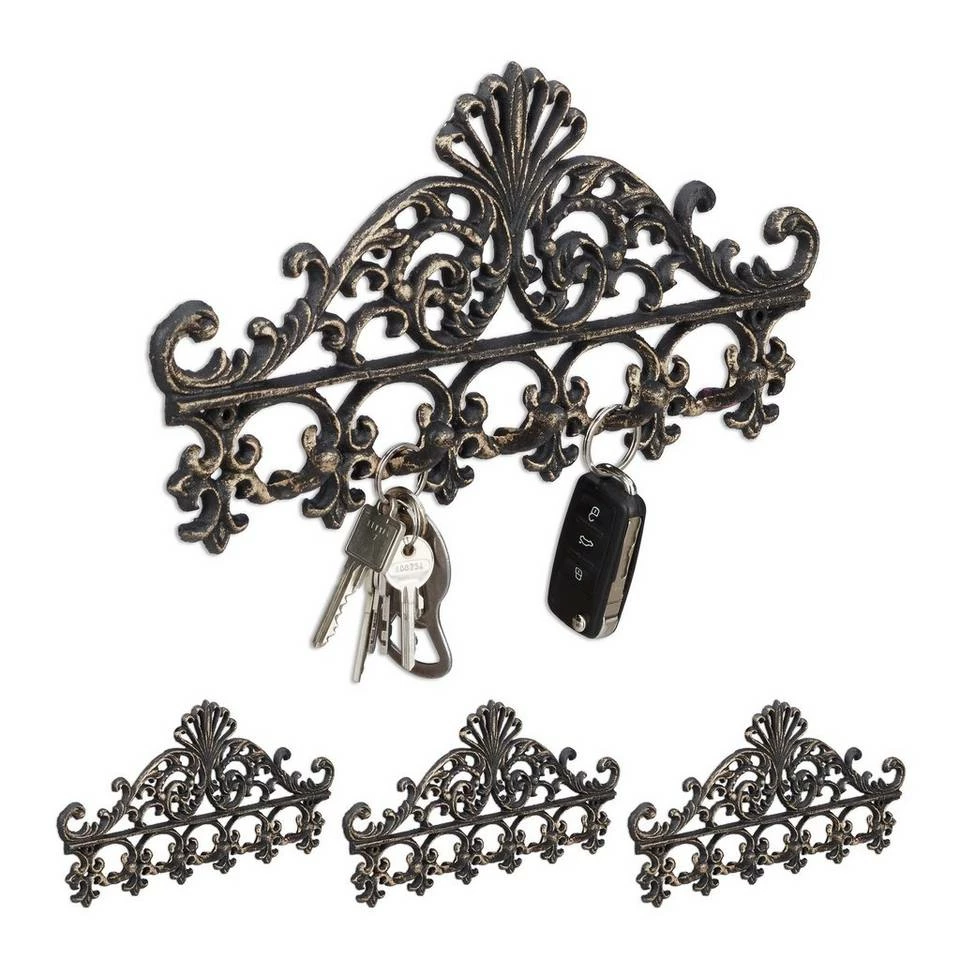 - Set: 4 x bronzefarbene Wandgarderobe im nostalgischen Antik-Stil – Dekorative Ornament-Verzierungen