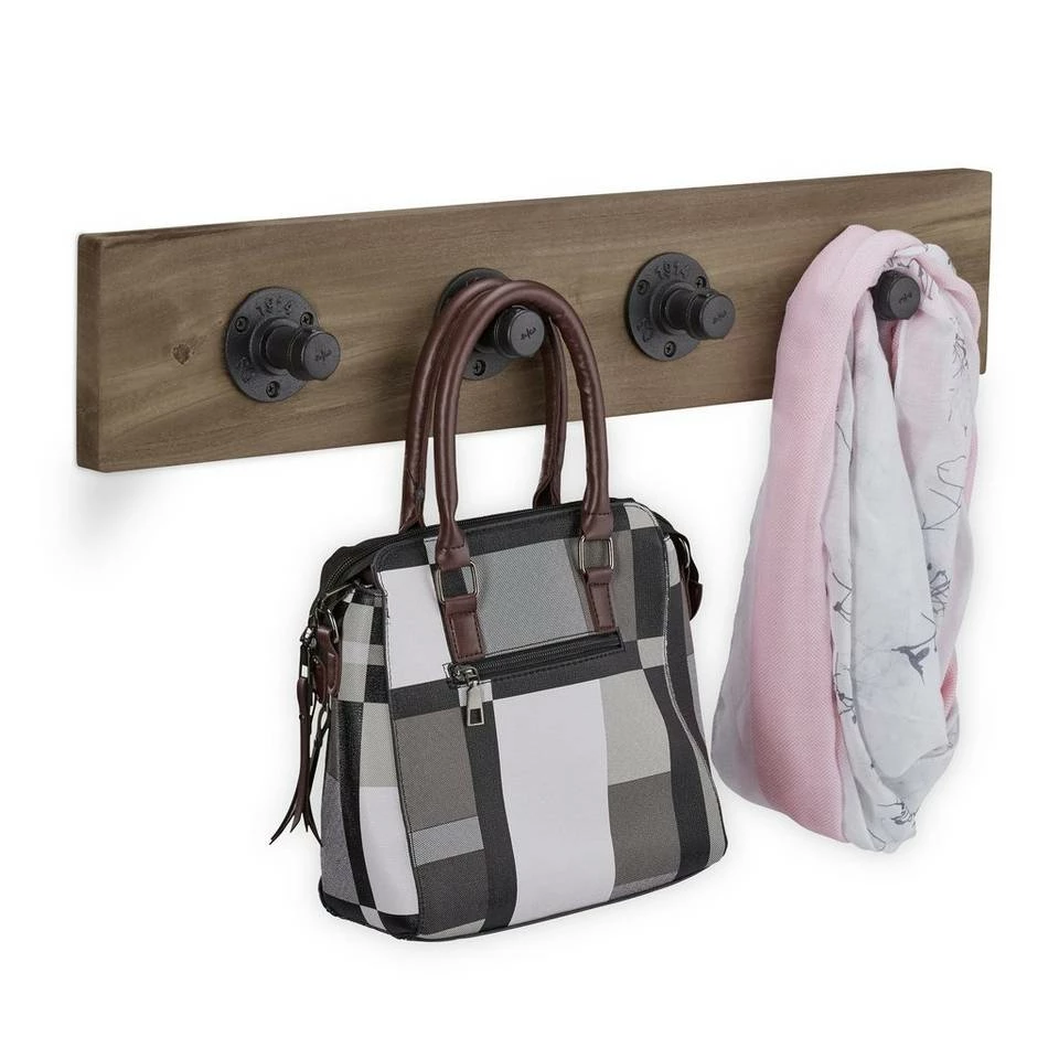 - Rustikales Design: Hakenleiste aus Holz und Metall – Dekorative Wandgarderobe im Industrial Stil
