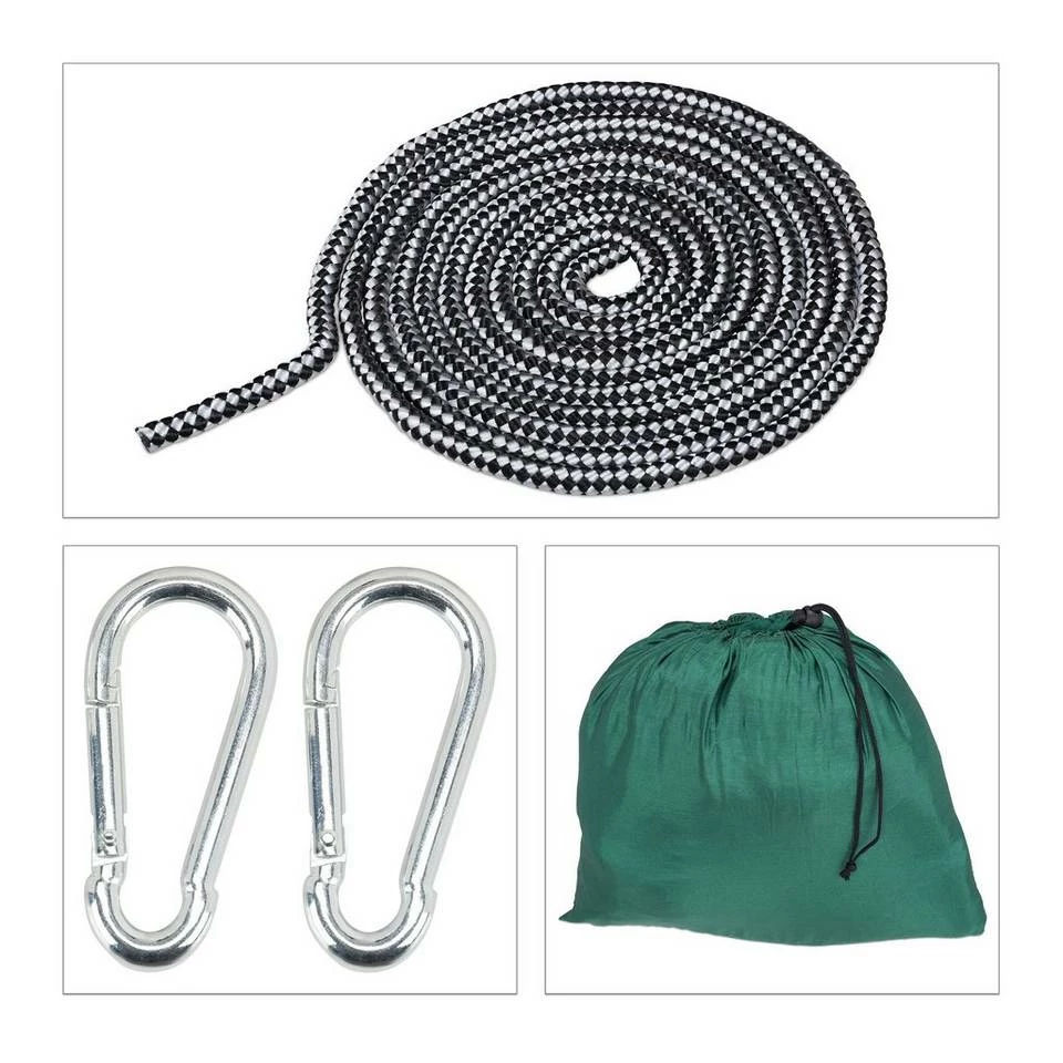 - Stabile Konstruktion: Reisehängematte in Grün aus starkem Nylon – H x B x T: ca. 120 x 277 x 135 cm
