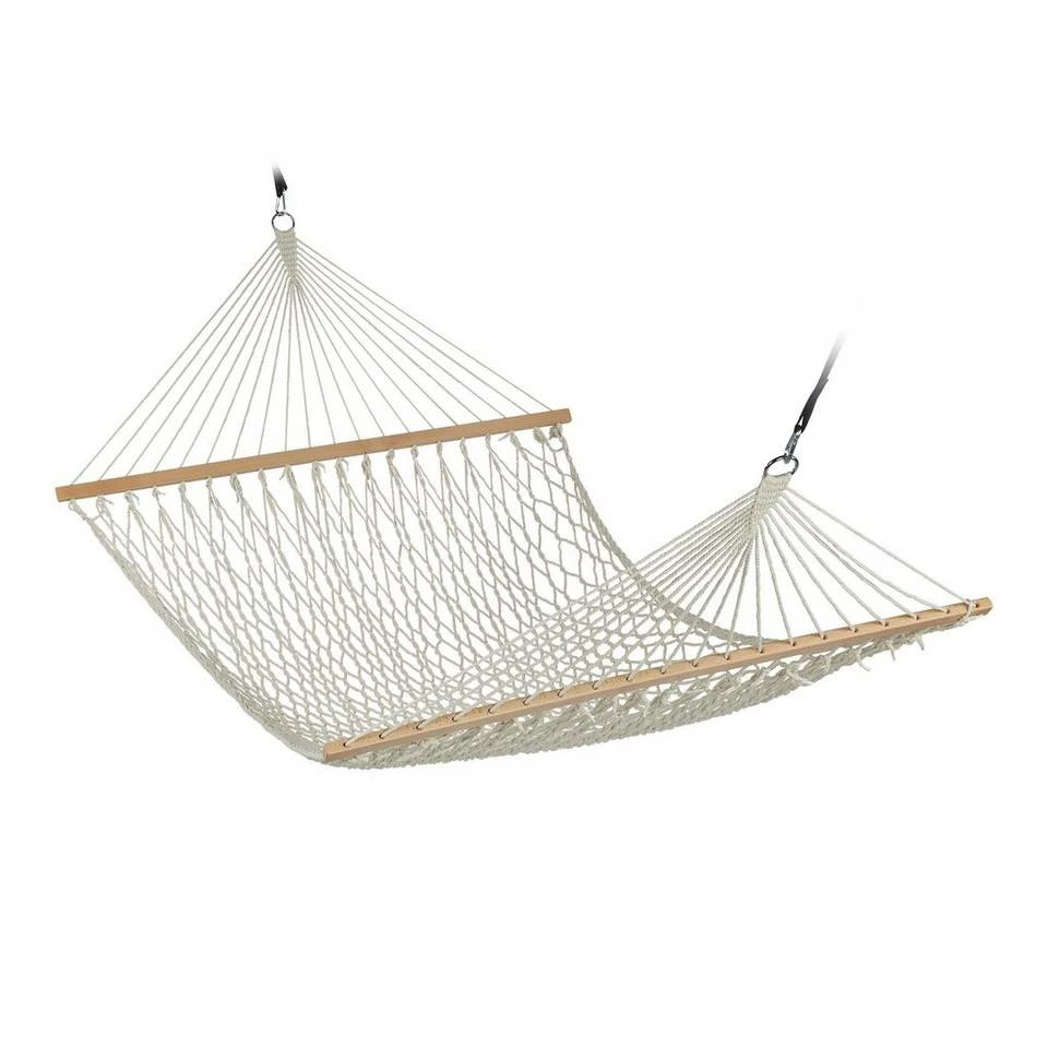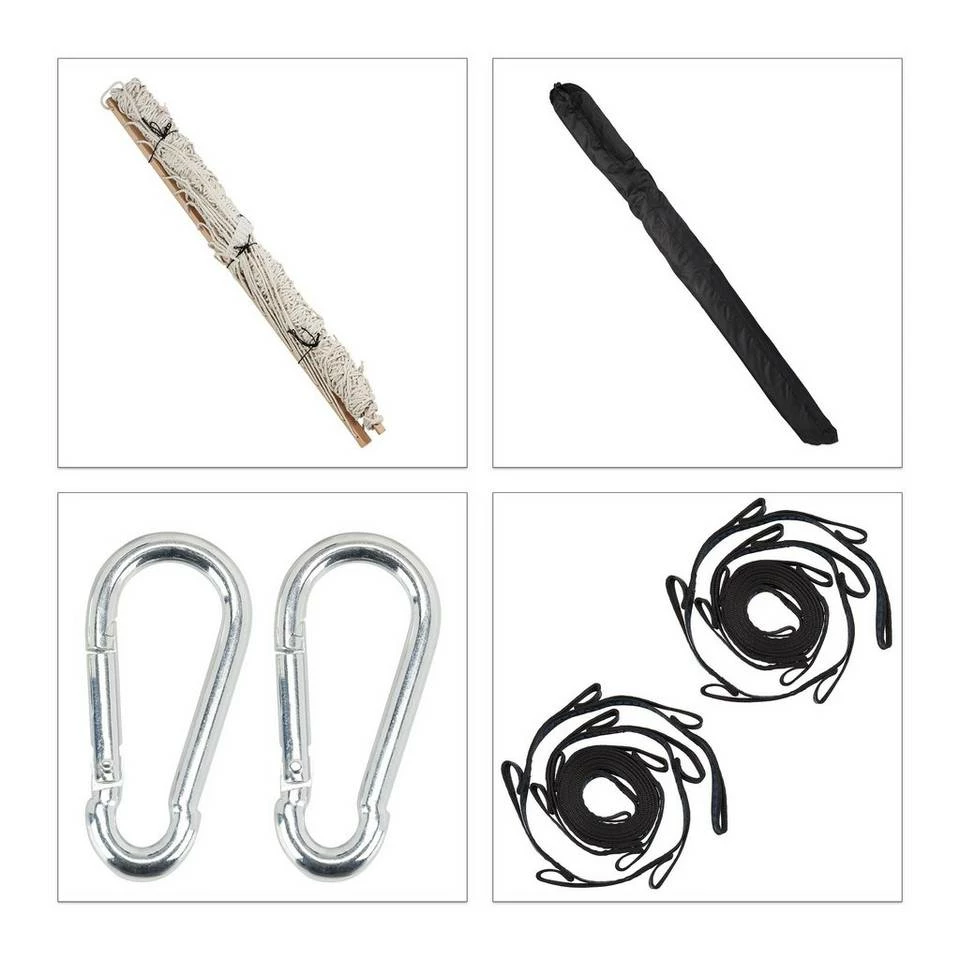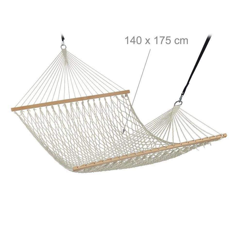 - Basics: Garten Hängematte aus Baumwolle und Holz HBT ca. 2 x 140 x 305 cm – Mit Befestigungsmaterial