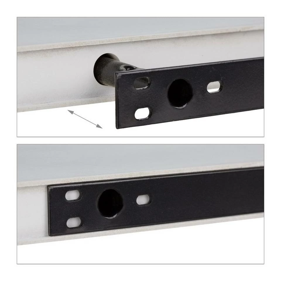 - Schnelle Montage: Die Aufhängung aus Metall ist ausziehbar und lässt sich mit 2 kleinen Schrauben fixieren – Schwebendes Regal für die unkomplizierte Wandmontage