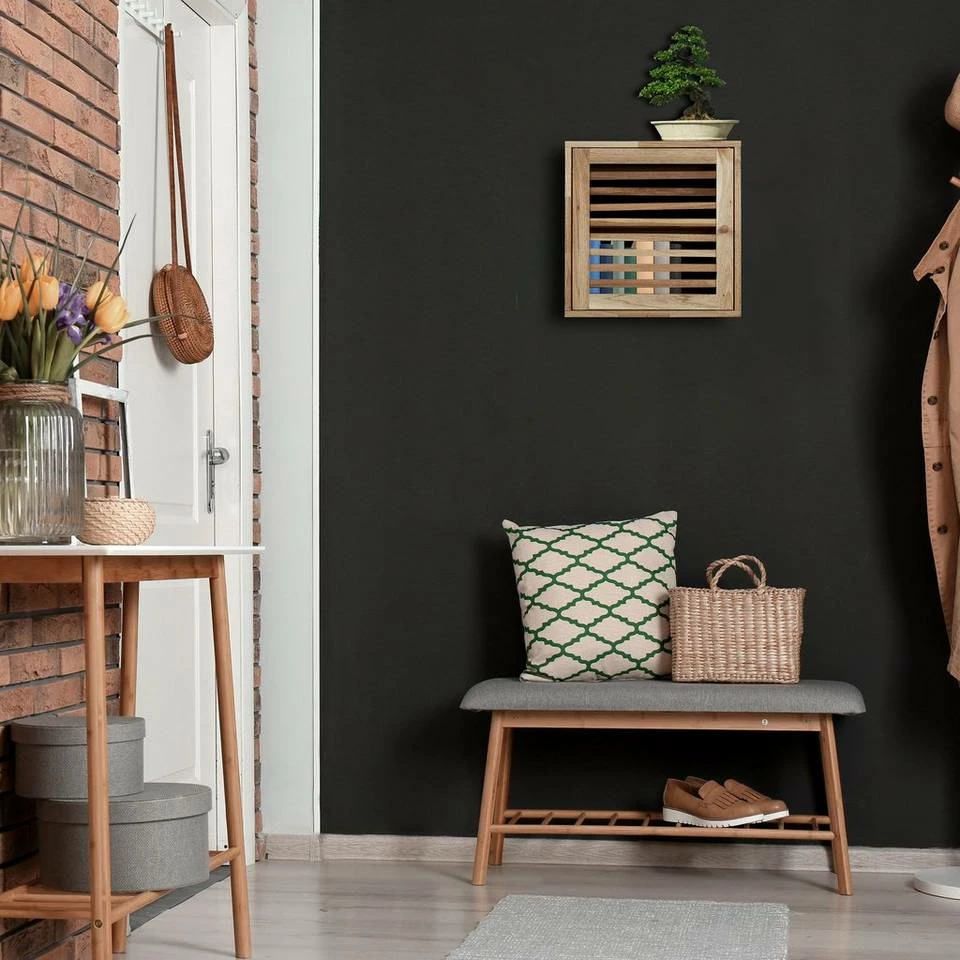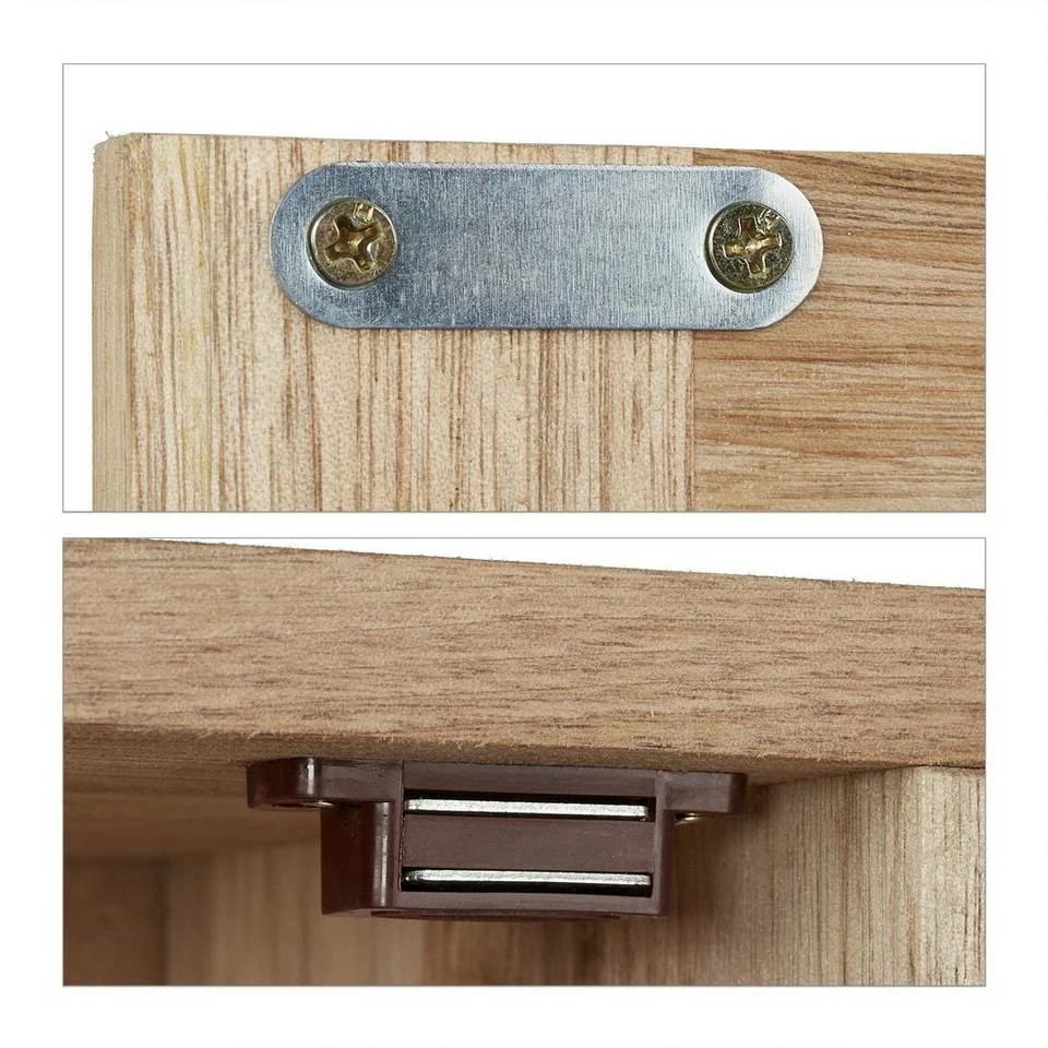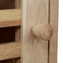 Kleiner Badezimmerschrank aus Walnussholz Der kompakte Badwandschrank mit Tür in dekorativer Lamellenoptik ist ideal für kleine Badezimmer oder das Gästebad. Platzsparend und doch geräumig bietet das Badezimmerschränkchen auf 2 Ebenen Platz für Duschbad, Lotionen, Parfums und weitere Badaccessoires. Die Schranktür bleibt dank Magnetverschluss sicher verschlossen. Der Hängeschrank aus edlem Walnussholz schafft auch in Flur und Küche praktischen Stauraum.