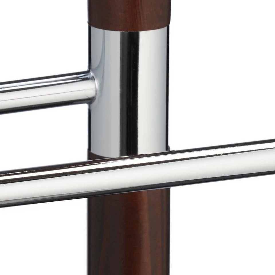 - Aus Holz: Eleganter Kleiderdiener aus dunkelbraunem Holz und MDF mit Chrom – Stilvoller Materialmix