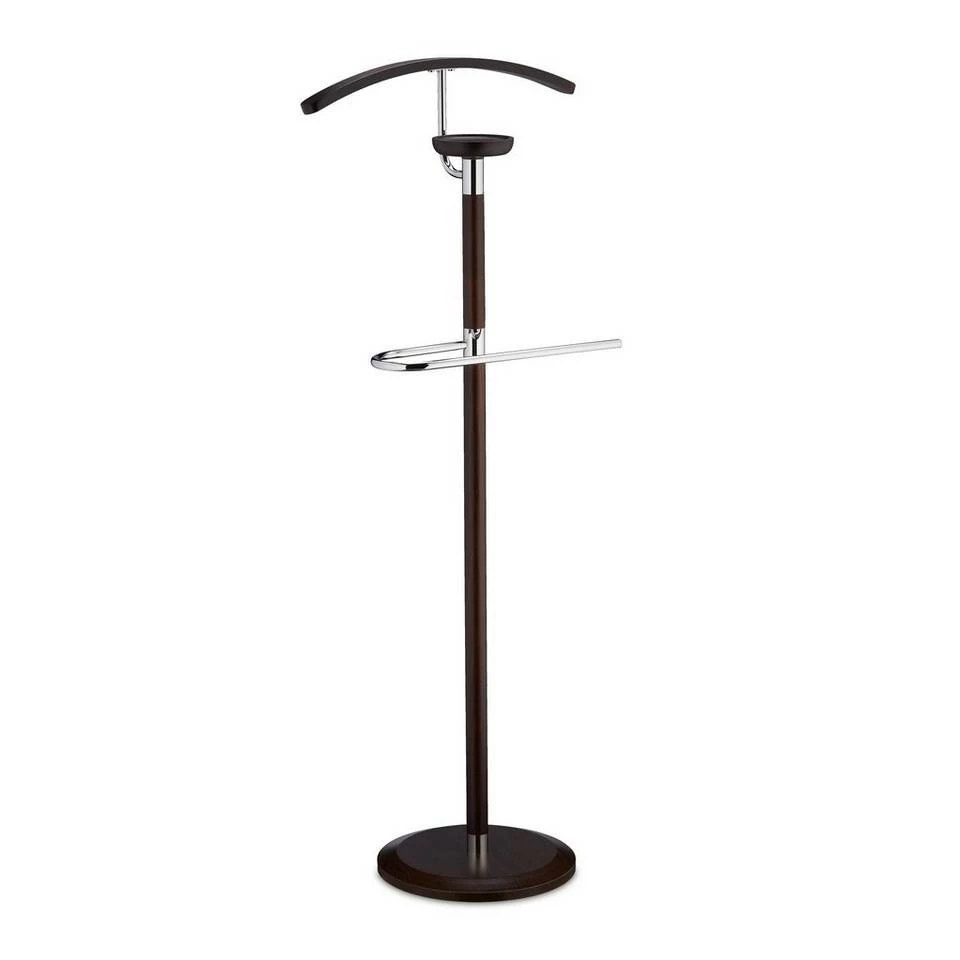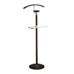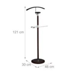 Großer Herrendiener für Anzug und Accessoires Mithilfe des eleganten Kleiderbutlers stellen Sie das passende Outfit zusammen und bewahren es faltenfrei auf. Der dunkelbraune Kleiderständer verfügt über Kleiderbügel, Hosenstange und Ablage. So haben Sie Ihre komplette Garderobe für den nächsten Tag griffbereit. Der stumme Diener eignet sich natürlich nicht nur als Anzugständer für Damen und Herren, als Kleiderablage für das alltägliche Outfit verhindert der stille Diener unschöne Kleiderhaufen und langes Zusammensuchen am Morgen.