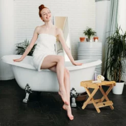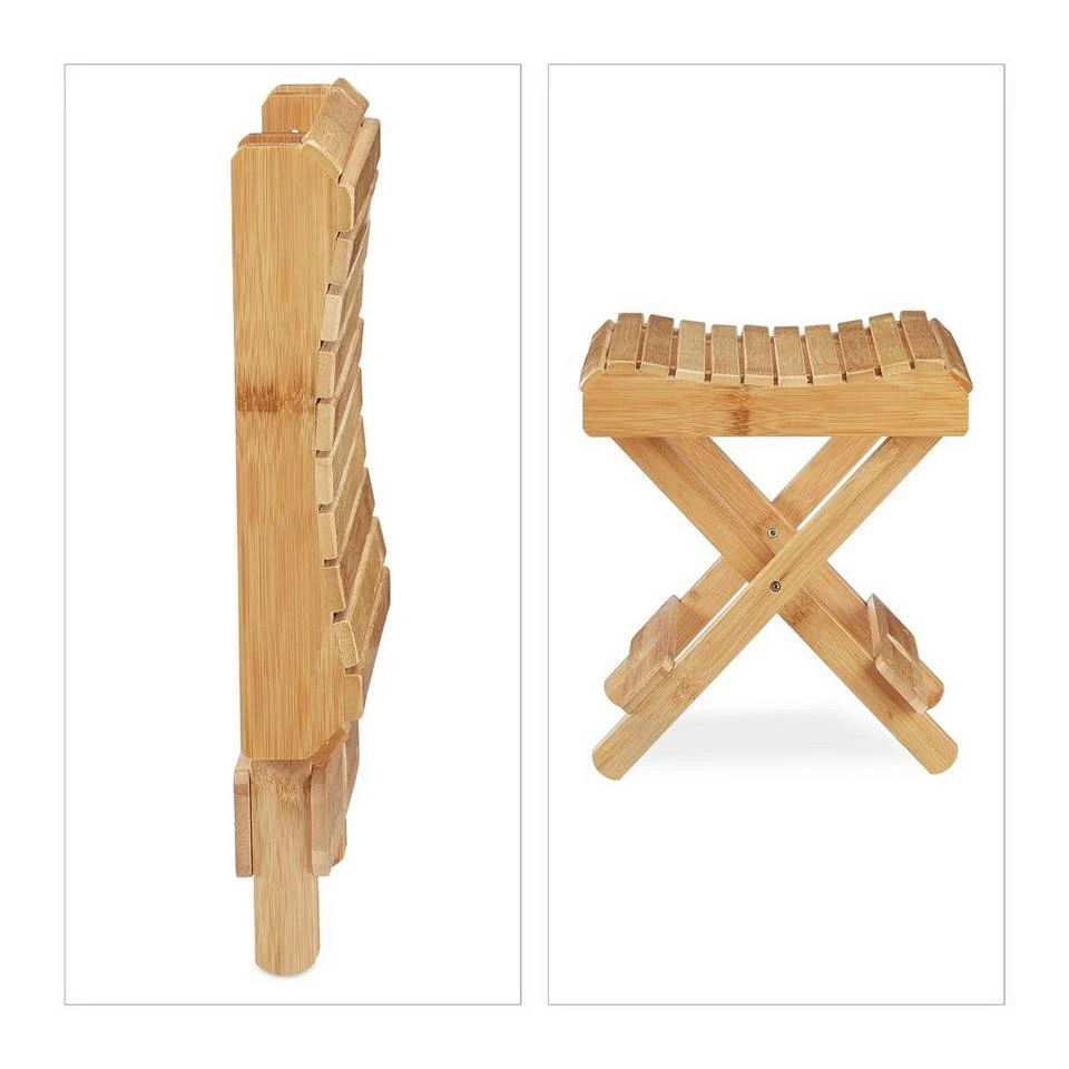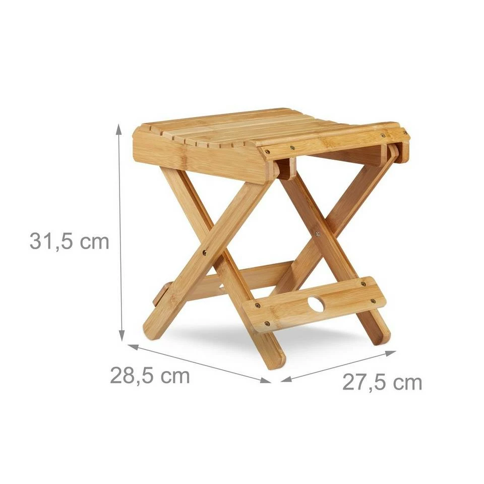 Bambus Hocker zum Klappen Der kleine Holzhocker in Natur ist ein praktischer Begleiter im Haushalt oder bei einem Campingausflug. Im Badezimmer ist das feuchtigkeitsliebende Material perfekt. Nutzen Sie den Badhocker aus Bambus als Ablage oder stellen sie ihre Beine beim Rasieren oder Eincremen auf den Tritthocker. Auch beim Schuhe anziehen ist er eine Hilfe. Durch die Klappfunktion lässt sich der Falthocker platzsparend verstauen oder transportieren. Die natürliche Maserung schafft eine angenehme Atmosphäre.