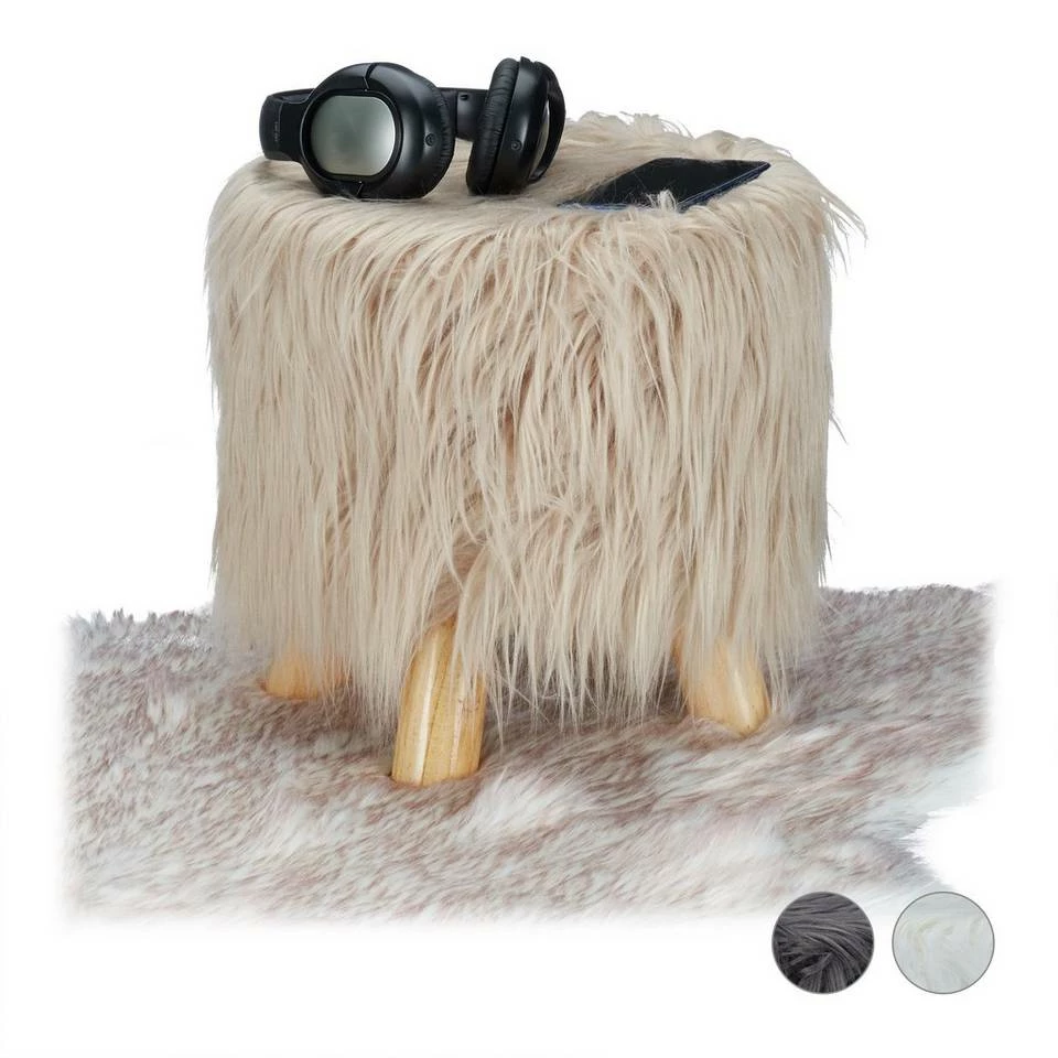 Runder Dekohocker Der Fellhocker fügt sich mit seinem animalischen Zottel-Look sehenswert ein. Als sympathischer Dekohocker setzt er im Wohn- oder Schlafzimmer Akzente. Das flauschig-weiche Kunstfell lädt zum Befühlen ein. Für einen festen Stand sorgen die 4 Beine aus natürlich schönem Kiefernholz. Dank der Schoner verewigt sich der Dekohocker nicht in Form unschöner Kratzer im Boden. Zudem bietet die gepolsterte Sitzfläche Jungen und Mädchen besten Sitzkomfort.