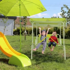 - Einladend: Kinderschaukel mit Sonnendach zum Ausruhen – Idealer Schattenspender dank neigbarem Dach