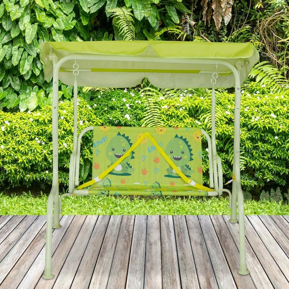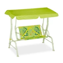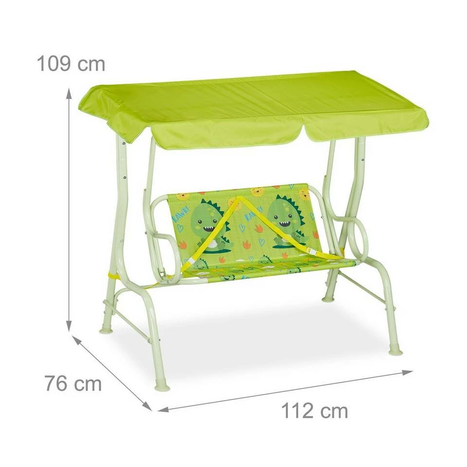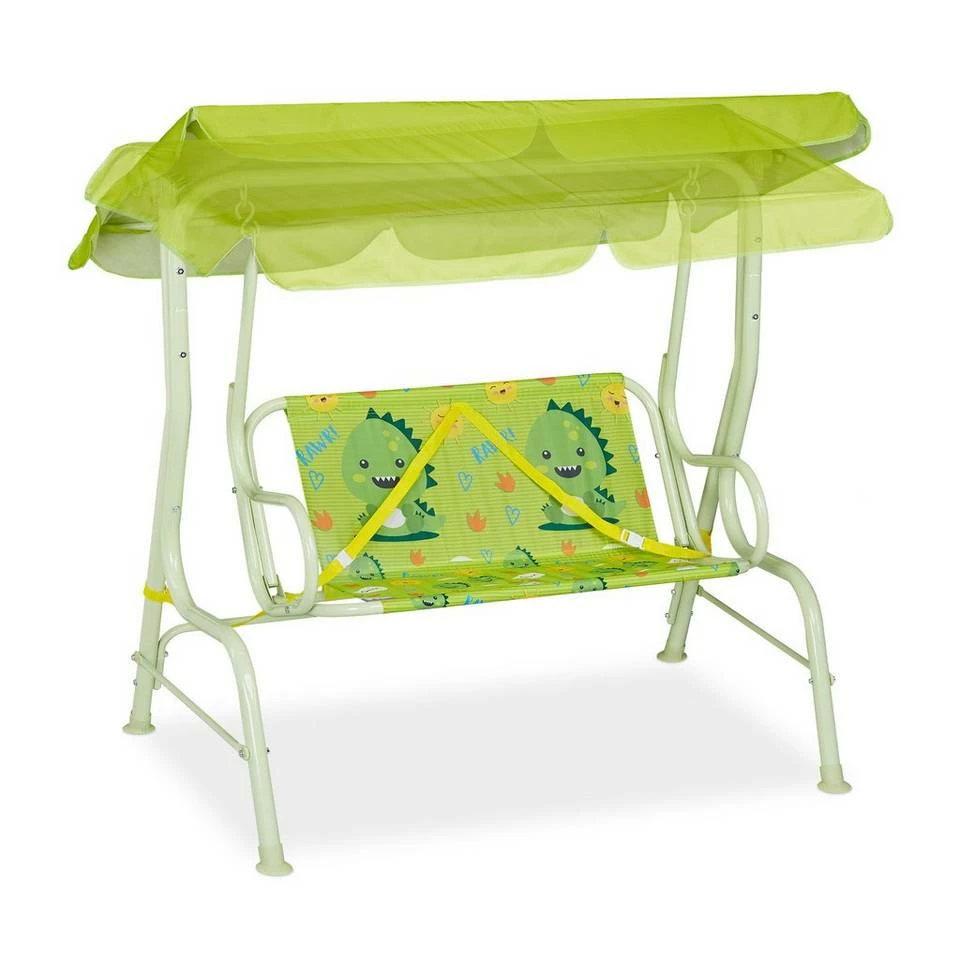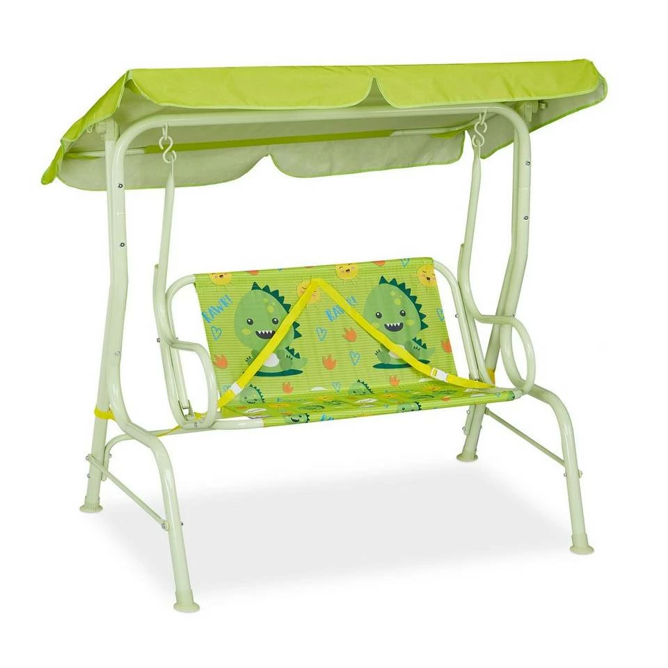 - Niedlich: Kinderhollywoodschaukel in Grün mit süßem Dino Motiv – Bunter Schaukelspaß für die Kleinen