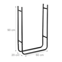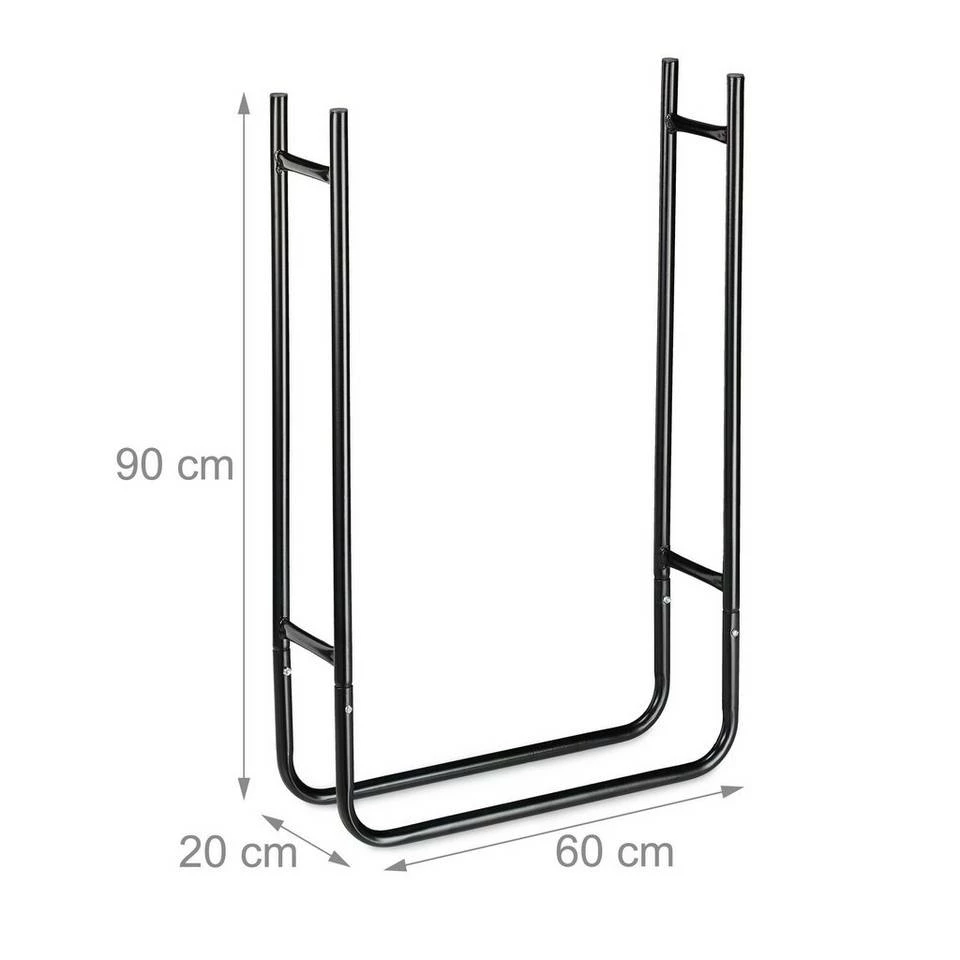 - Basics: Schwarzes Feuerholzregal mit den platzsparenden Maßen HBT ca. 90x60x20 cm – Aus Metall gefertigt