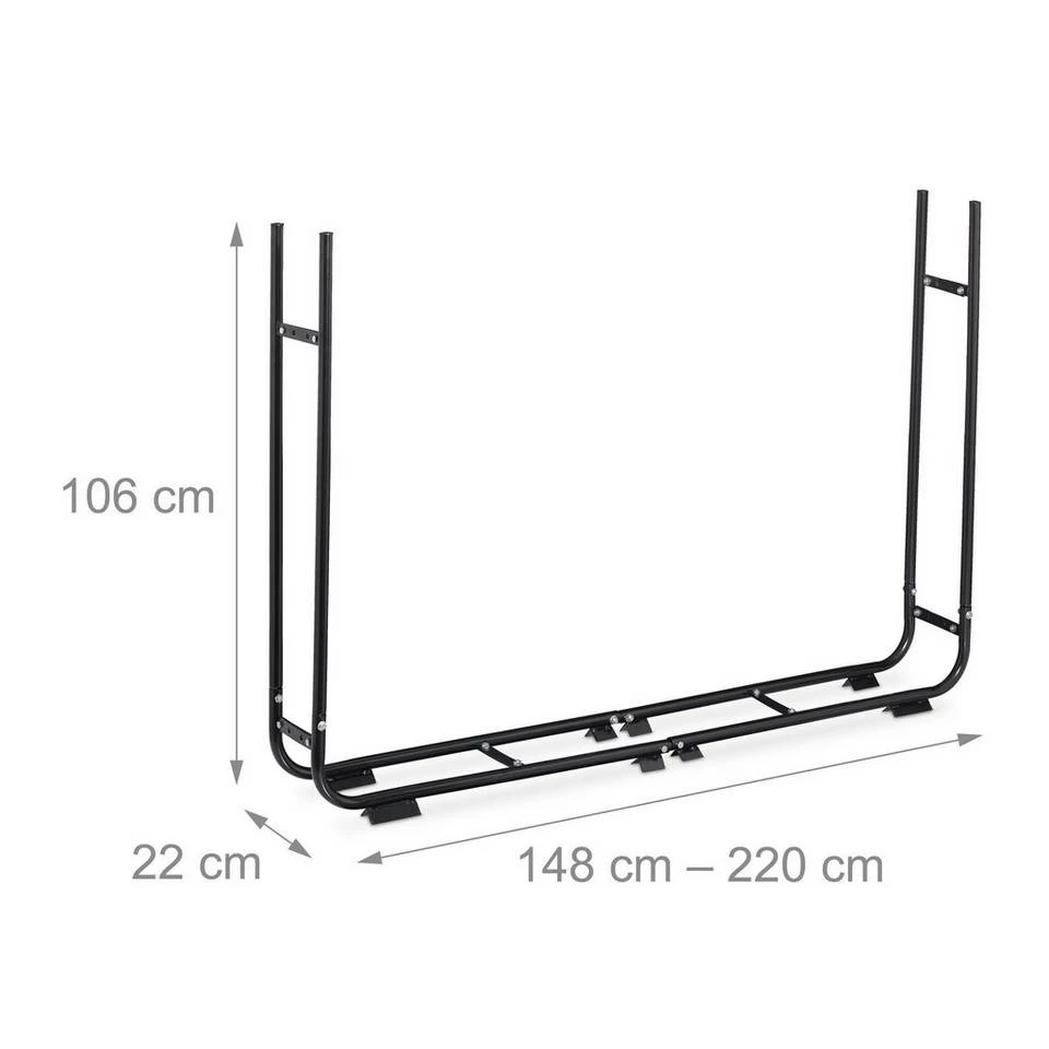 Ausziehbare Kaminholzablage Mit diesem praktischen Brennholzregal können Sie eine große Menge Feuerholz ordentlich und übersichtlich aufbewahren. Das Besondere: das Regal wächst und schrumpft mit der Größe Ihres aktuellen Holzvorrats. Lösen Sie dazu einfach die mittleren Schrauben und ziehen Sie das Regal auf eine von 5 wählbaren Breiten aus. Egal ob im Wohnzimmer neben dem Kamin oder Ofen, im Keller oder Schuppen – der Kaminholzhalter fügt sich dank seinem schlichten Design gut ein und ist stabil sowie langlebig.