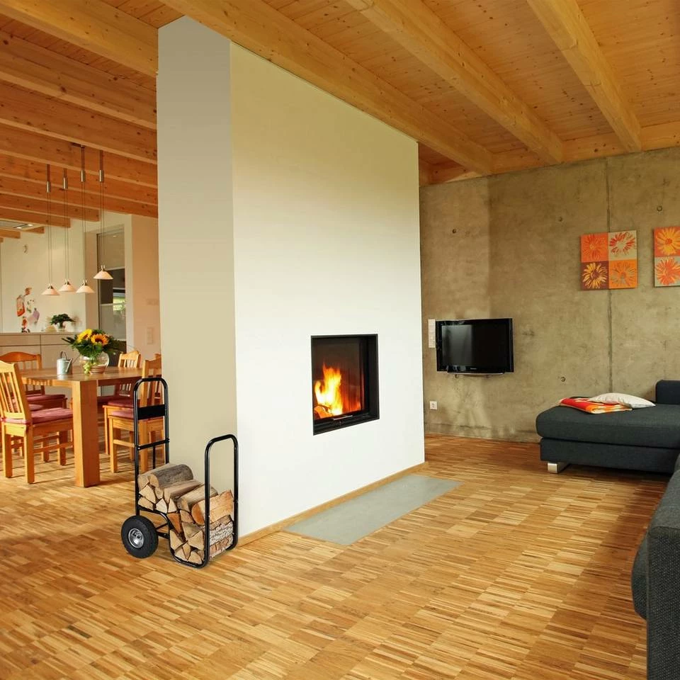 - Holztransport: Bring die vorbereiteten Holzscheite mit dem Brennholzwagen bequem zum Ofen oder Kamin