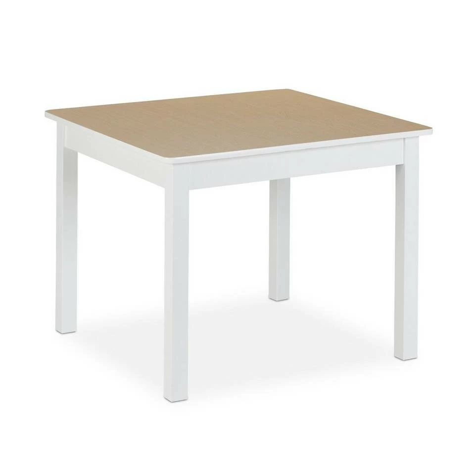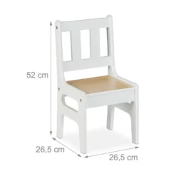 Sitzgruppe für das Kinderzimmer Die 3-teilige Sitzgruppe besteht aus einem Kindertisch und zwei Stühlen, die in ihrer kindgerechten Größe die Kleinen zum Spielen, Malen und Basteln einladen. Der moderne, minimalistische Look der Tischgruppe fügt sich unaufdringlich in jedes Kinderzimmer ein – eine willkommene Abwechslung zu kunterbunten Spielzeugwelten. Auch als Esstisch für Kleinkinder ist er funktional, sodass Sie mit Mahlzeiten und Snacks die Selbstständigkeit Ihrer Kinder im Alltag fördern können.