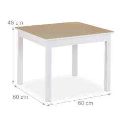 - Set: Sitzgruppe mit einem Kindertisch und zwei Stühlen – Maße Tisch HxBxT ca. 48 x 60 x 60 cm
