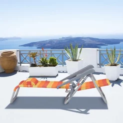 - Universal: Der Klappstuhl ist perfekt für Garten, Camping, Strand uvm. – Gelb-Rot-Orange gestreift