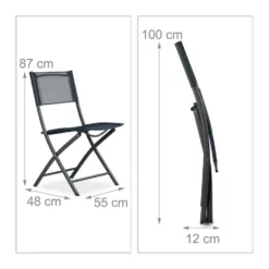 Bequemer Balkon Klappstuhl im 2er Set Mit diesen modernen Klappstühlen besitzen Sie eine unkomplizierte Sitzgelegenheit für den Außenbereich. Die Stühle passen auch auf Balkone und Terrassen mit wenig Platz. Das wasserfeste und robuste Material ist auch für die Nutzung im Garten geeignet. Dank der praktischen Faltfunktion verstauen Sie die Balkonklappstühle platzsparend im Keller oder Schrank. Auch für den Transport im Kofferraum eignen sie sich damit ideal. Machen Sie es sich beim Camping oder auf dem Festival gemütlich. Dank des luftdurchlässigen Bezuges sitzen Sie auch bei hohen Temperaturen angenehm und komfortabel.