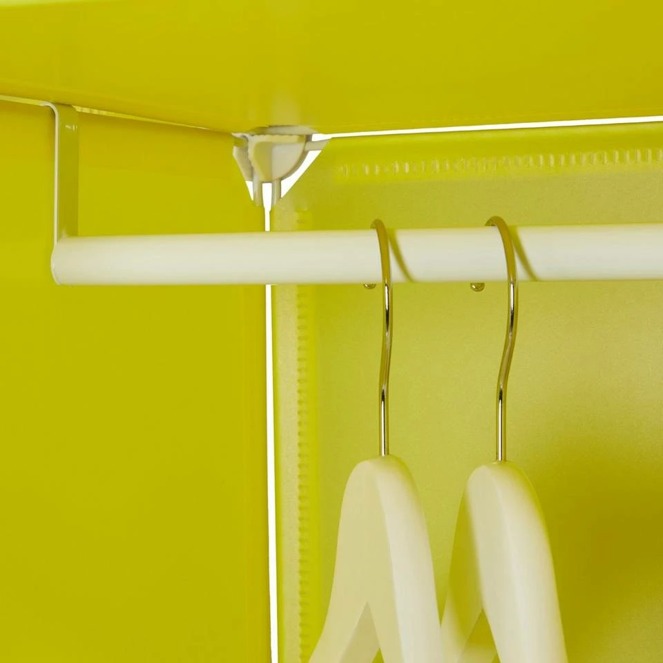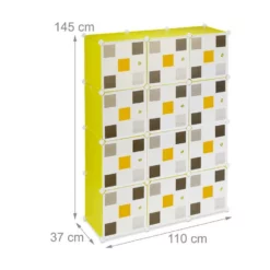 Steckschrank in auffälligem Design Das individuelle Steckregalsystem ist die ideale Aufbewahrungsmöglichkeit für Kleidung, Wohntextilien und mehr. Das Regalsystem aus Kunststoff-Platten und Steckverbindungen ermöglicht einen Aufbau in die Höhe oder in die Breite – ganz nach Wunsch. Dank der 2 Kleiderstangen lassen sich Taschen, Schals u. Ä. ordentlich aufhängen. Für alle, die häufig umziehen müssen oder gerne mal umräumen ist das individuelle Stecksystem die ideale Wahl. Der Aufbewahrungsschrank ist vielseitig einsetzbar.