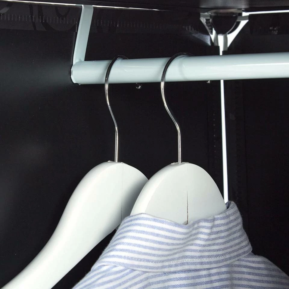 Vielseitiges Steckregal für individuellen Aufbau Das individuelle Steckregalsystem ist die ideale Aufbewahrungsmöglichkeit für Kleidung, Wohntextilien und mehr. Das Regalsystem aus Kunststoff-Platten und Steckverbindungen ermöglicht einen Aufbau in die Höhe oder in die Breite – ganz nach Wunsch. Dank der 2 Kleiderstangen lassen sich Taschen, Schals u.ä. ordentlich aufhängen. Für alle, die häufig umziehen müssen oder gerne mal umräumen ist das individuelle Stecksystem die ideale Wahl. Der Aufbewahrungsschrank ist vielseitig einsetzbar.