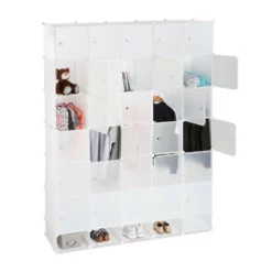 XXL Kleiderschrank Stecksystem für mehr Platz Mit 25 Fächern und einer Gesamthöhe von über 2 Metern überzeugt dieser Kleiderschrank vor allem mit seinem Stauraum. Schmale Fächer für Schuhe, viele tiefe Fächer für Hosen, Pullover und mehr und insgesamt 5 Kleiderstangen an denen Blusen, Kleider und Anzüge Platz finden. Somit haben Sachen Ihrer ganzen Familie in dem großen Faltschrank einen sicheren Aufbewahrungsort. Auch für 5er WGs oder modebewusste Frauen, die gerne die Mode der letzten Jahrzehnte angesammelt haben, ist dieser Koloss von einem Schrank genau das Richtige. Das flexible Stecksystem ermöglicht einen problemlosen Umbau oder auch eine Umgestaltung der Anordnung. Bauen Sie sich beispielsweise ein Treppenregal und ein kleines Schuhregal. Hinweis: Regal bei Raumtemperatur aufbauen, um Verbindungsstücke biegsam zu halten