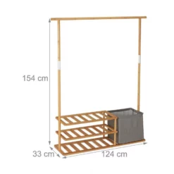 - Basics: Standgarderobe aus Bambus – HBT: ca. 154 x 124 x 33 cm – Für Flur, Schlaf-, Ankleidezimmer etc.
