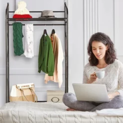 - Mit Kleiderstange: Zum Aufhängen von Hemden, Blusen, Kleidern – Auch für Jacken und leichte Mäntel