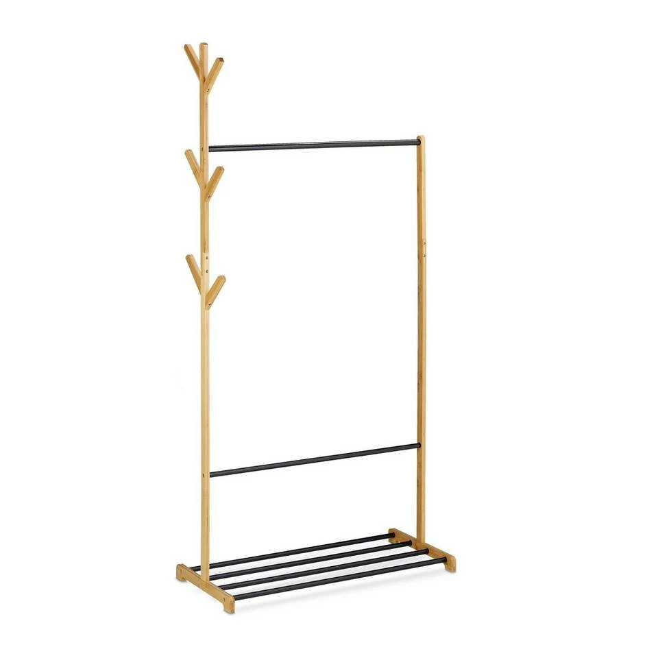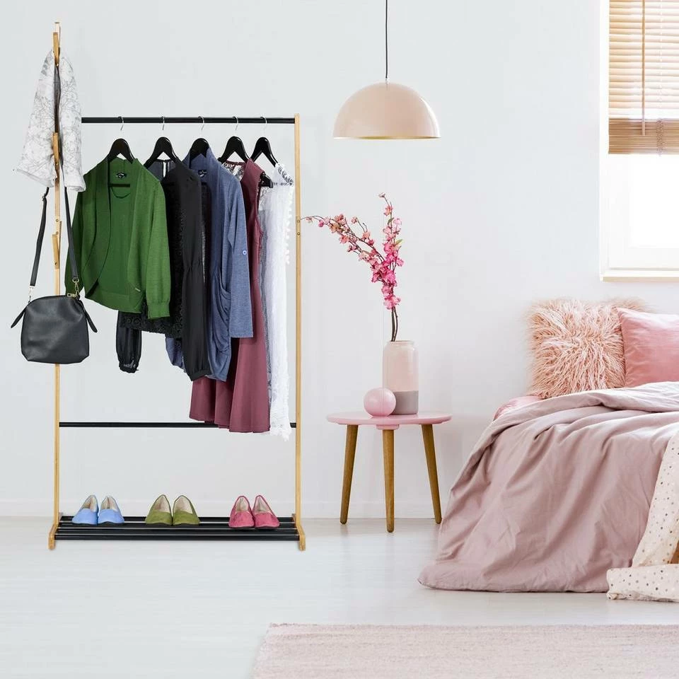 - Modern: Natürlicher Bambus kombiniert mit schwarzen Metallstangen – Verleiht Garderobe modernen Look
