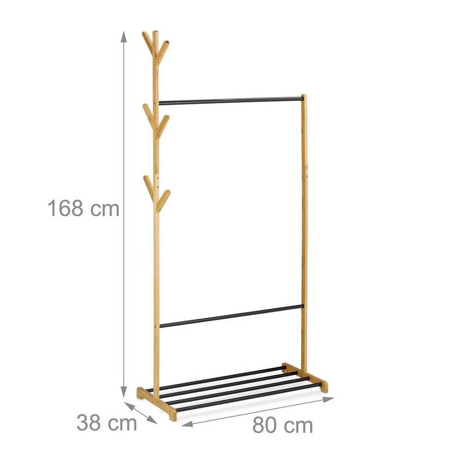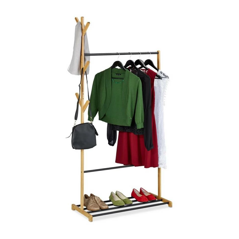 - Funktional: Der Kleiderständer vereint Kleiderstange, Schuhablage und 6 Haken in kompaktem Gestell