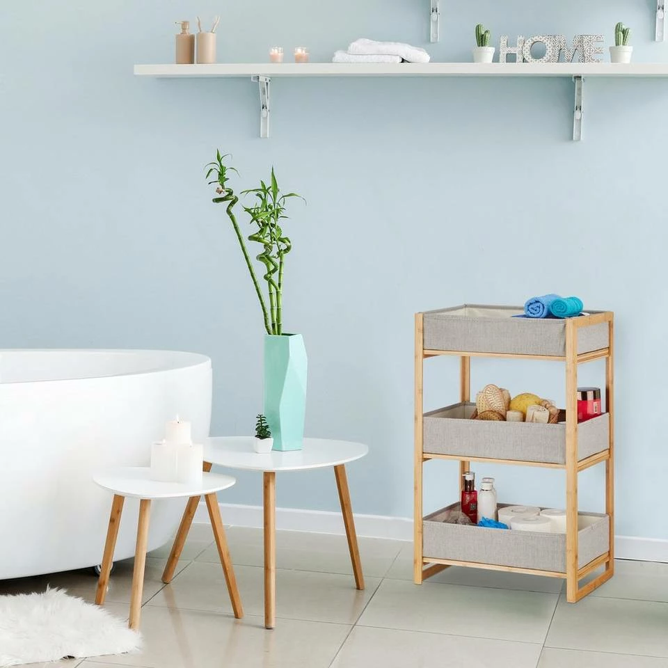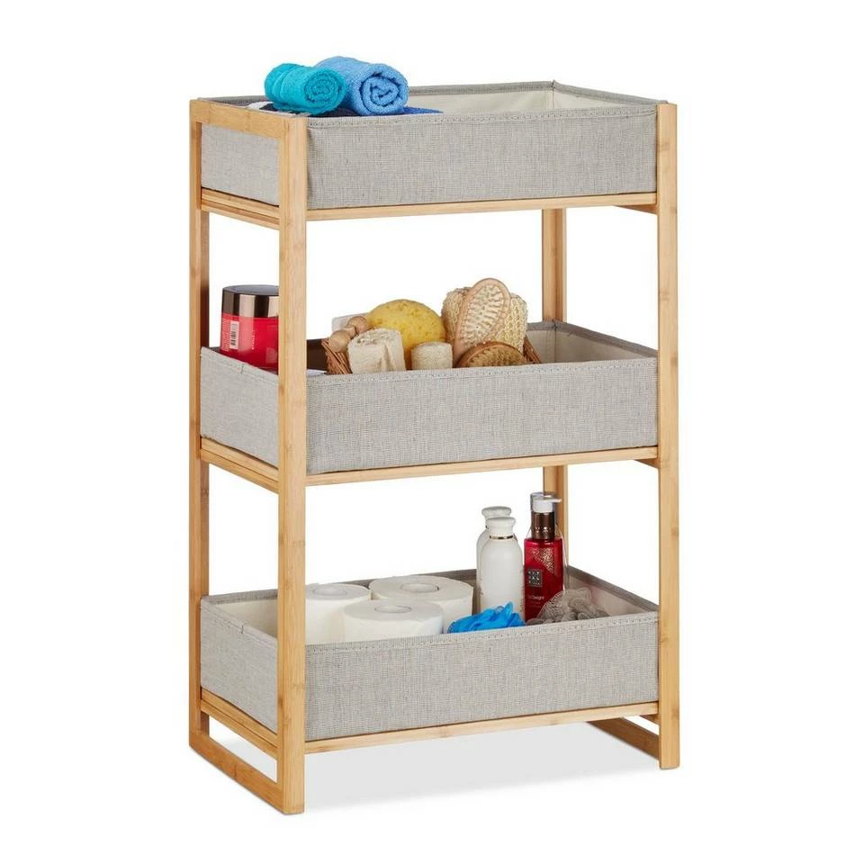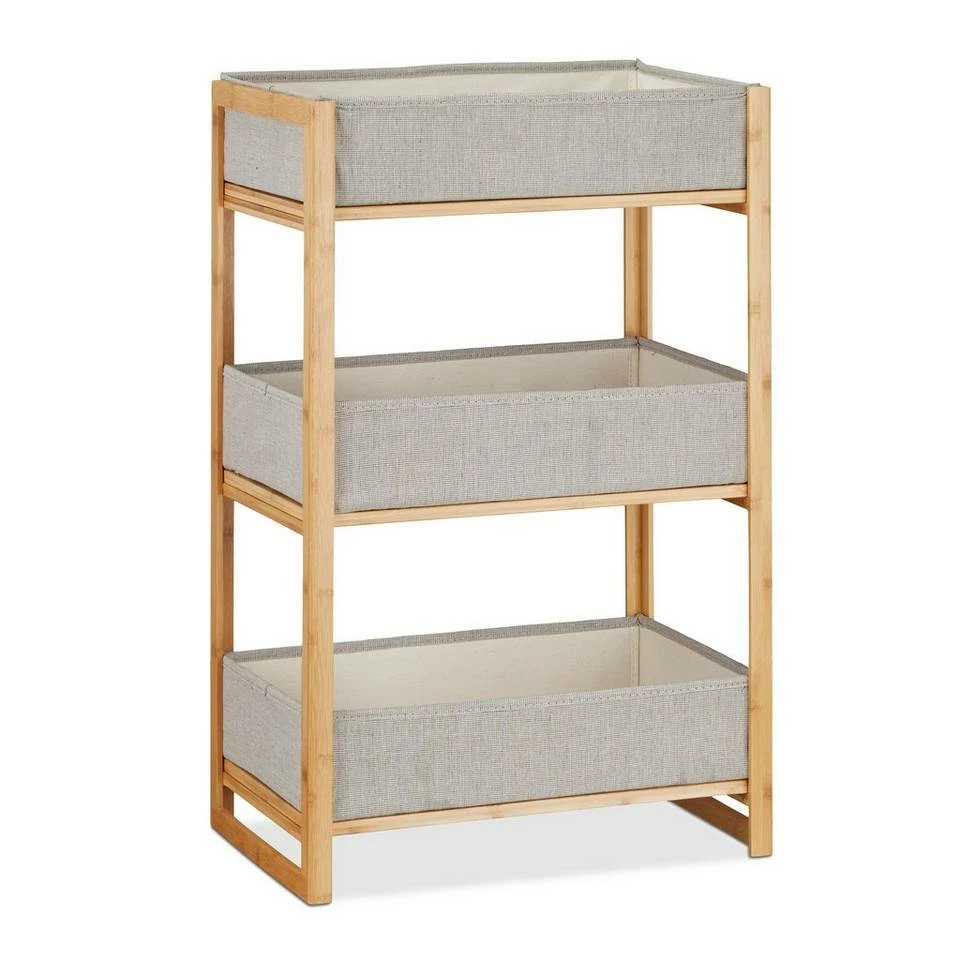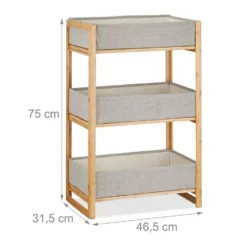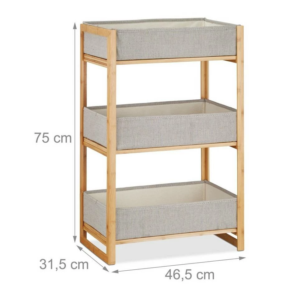 Offene Schubladenkommode für Ihr Zuhause Ihnen geht allmählich der Platz aus? Mit der vielseitigen Korbkommode schaffen Sie im Handumdrehen zusätzlichen Stauraum auf 3 Ebenen. Der natürliche Look des gemaserten Bambusholzes fügt sich wohltuend in Ihr Bad, die Küche oder das Schlafzimmer ein. Doch das Korbregal offenbart nicht nur dekorative Talente. Die Körbe lassen sich schnell aufklappen und bei Bedarf wieder flach zusammenfalten. Zusätzliches Werkzeug benötigen Sie keines, denn alles Erforderliche für die unkomplizierte Montage ist in der Lieferung bereits enthalten.
