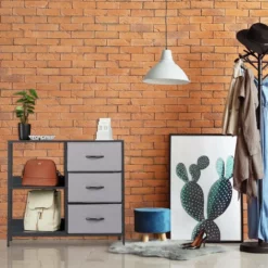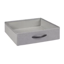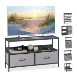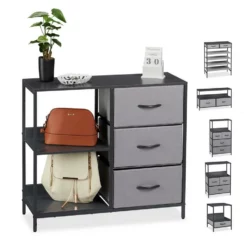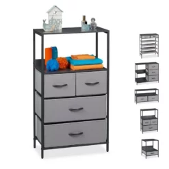 - Material-Mix: Schubladen aus Stoff, Stahlgestell, MDF-Platten in Holzoptik – Stilvoll in versch. Grautönen