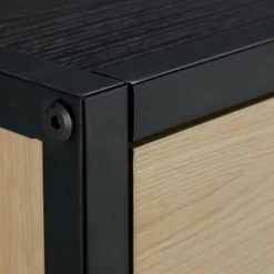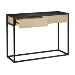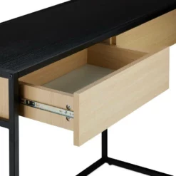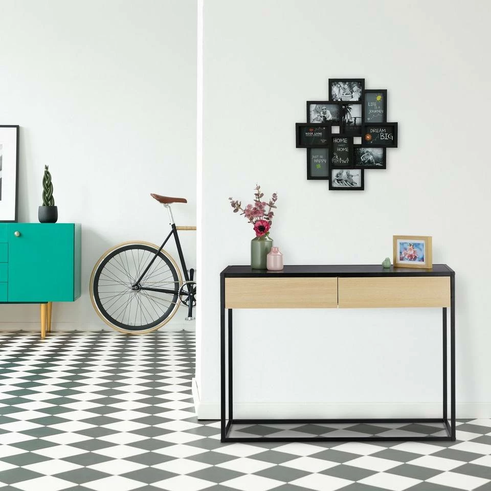 - Dekorativ: Moderner Flurtisch mit schwarzem Metallgestell und Schubfächern in heller Eichenoptik