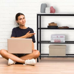 - Platzsparend: Schmaler Konsolentisch mit 4 großzügigen Ablagen – Für Zeitungen, Schlüssel, Telefon