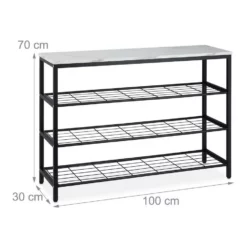 - Modern: Flurkonsole mit 3 Gitterebenen aus schwarzem Metall – Weiße Tischplatte in Marmoroptik
