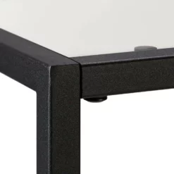 Schmaler Beistelltisch mit 2 Glasplatten Schaffen Sie in Ihrem Flur zusätzlichen Stauraum mit dieser dekorativen Konsole. Der schmale Beistelltisch besitzt die perfekte Höhe, um im Korridor als Ablagefläche, für Schlüssel, Telefon und Dekoelementen zu dienen. Das Zusammenspiel aus schwarzem, mattem Metall und 2 Tischplatten aus gehärtetem Glas, lassen den Ablagetisch zu einem modernen Hingucker in Ihrem Zuhause werden. Dabei ist der schmale Eingangstisch mit nur wenigen Handgriffen unkompliziert aufgebaut.