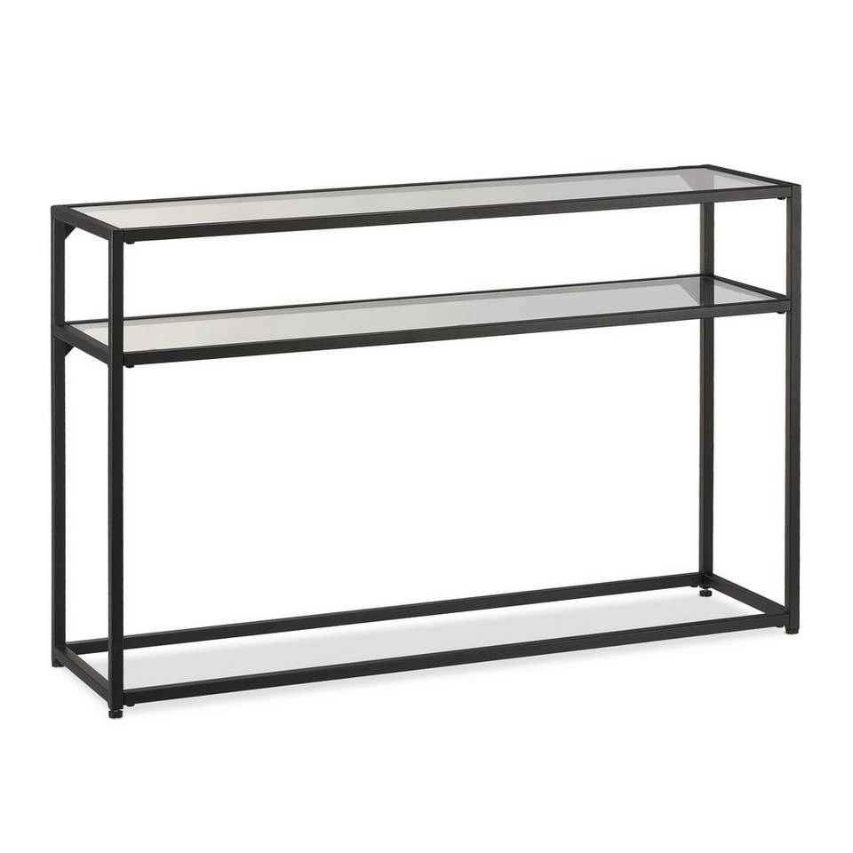 - Dekorativ: Flurtisch mit schwarzem Metallgestell sowie Ablagen aus Glas – Moderne und schlichte Optik