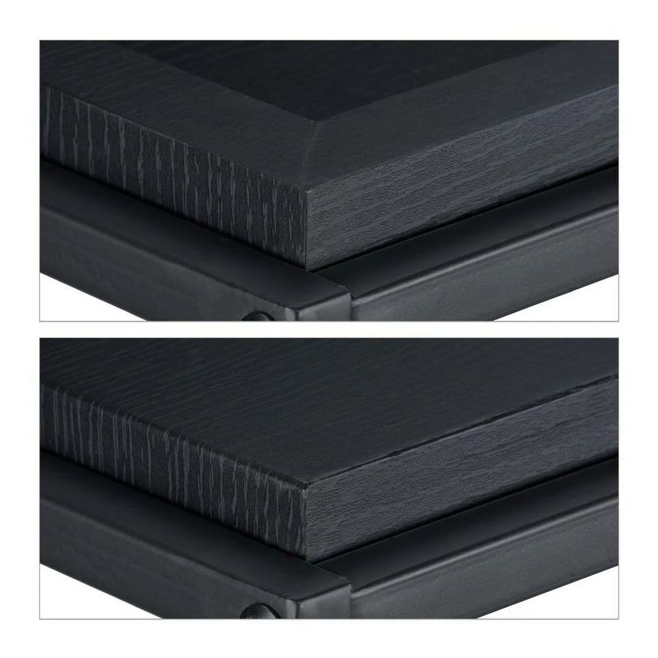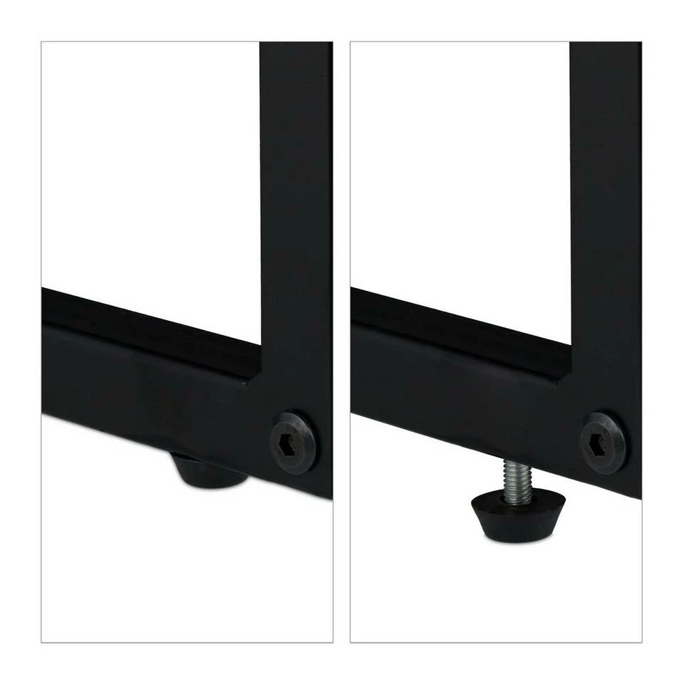 Schwarzer Flurtisch in modernem Design Mit diesem schmalen Konsolentisch schaffen Sie praktischen Stauraum auf geringer Stellfläche. Der Eingangstisch eignet sich besonders für Flur und Diele, wo er Platz für Schlüssel, Briefe und Telefon bietet, macht aber auch als Ablagetisch für Vasen und Dekoartikel im Wohnzimmer eine gute Figur. Der ganz in Schwarz gehaltene Flurkonsolentisch überzeugt durch sein schlichtes Design aus Metallgestell und Ablage in Holzoptik. Mit den verstellbaren Füßen gleichen Sie Bodenunebenheiten einfach aus.