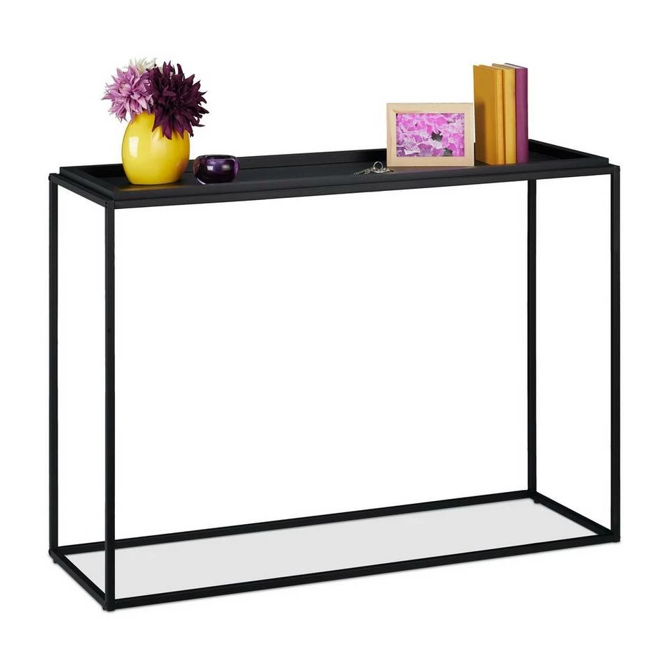 - Basics: Schwarzer Flurkonsolentisch – Maße H x B x T: ca. 80 x 110 x 38 cm – Traglast: max. 30 kg
