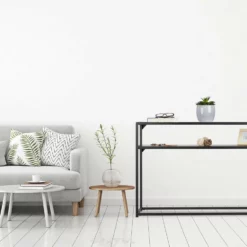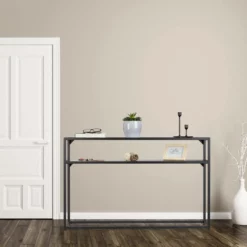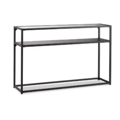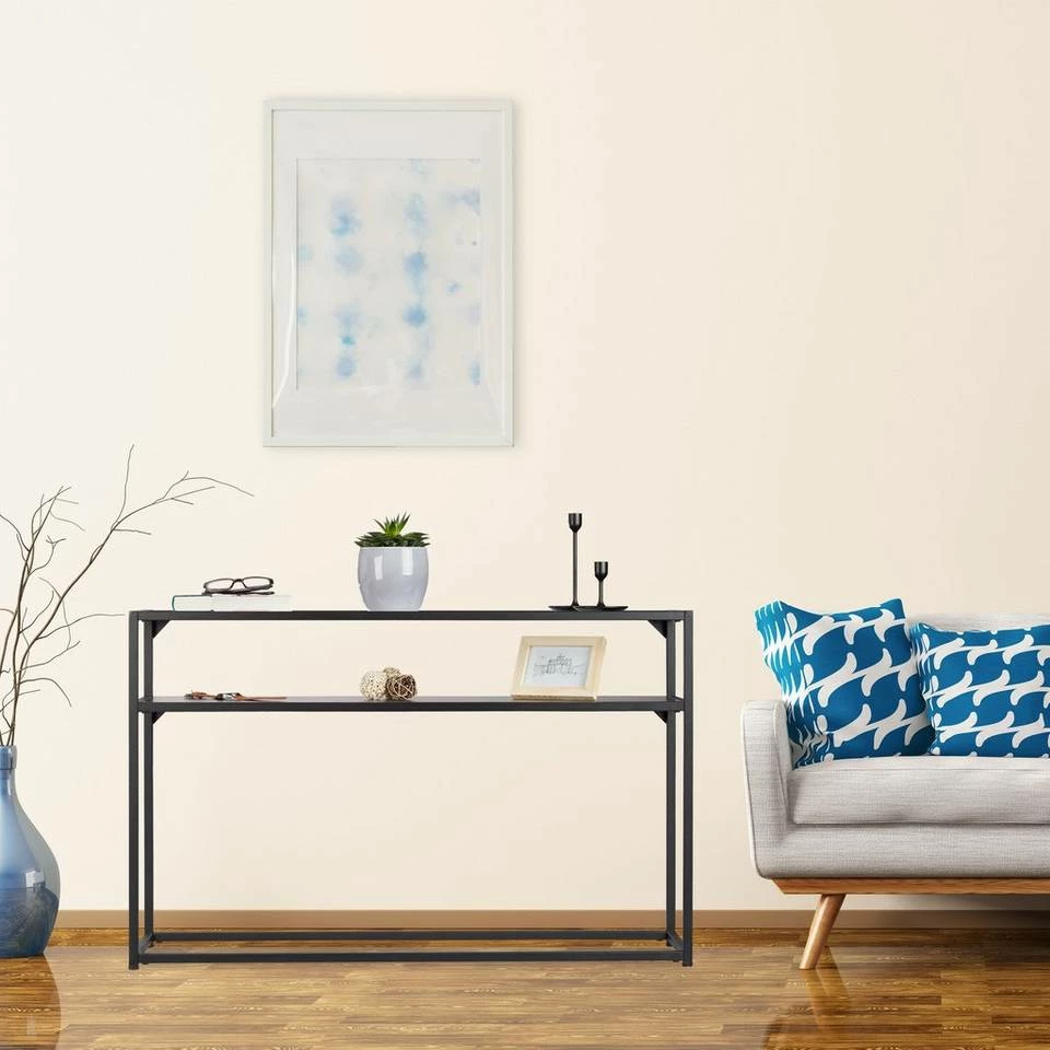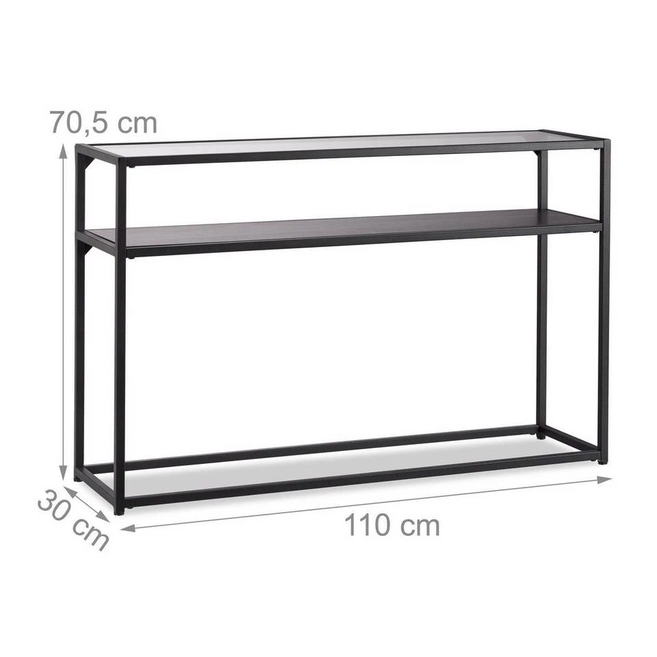 Wohnzimmertisch mit Glasplatte Um den Tag gemütlich im Wohnzimmer ausklingen zu lassen, darf der passende Sofatisch nicht fehlen. Ob Snackschalen, Getränke, Zeitschriften oder Handys: Dank des Konsolentischs ist alles immer griffbereit. Die Tischplatte besteht aus gehärtetem Glas, das durch seine große Belastbarkeit überzeugt. Die Scheibe ist durchsichtig, sodass Sie sich schnell einen Überblick über die Accessoires auf der melaminbeschichteten Ablage darunter verschaffen. Der Wohnzimmertisch hat ein stabiles Metallgestell, das dank der Schoner keine Kratzer im Boden hinterlässt.