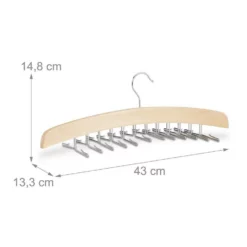 Mit dem Krawattenhalter Stress vermeiden Sie nennen einige Krawatten Ihr Eigen und suchen nach dem passenden Bügel für Ihren Kleiderschrank? Dann sollten Sie einen Blick auf diesen Krawattenhalter werfen. Anstatt irgendwo verstreute, unschön verknitterte Krawatten zusammenzusuchen, bewahren Sie Ihre Lieblinge dank des Schlipshalters übersichtlich und geordnet auf. Der Bügel aus stabilem Lotusholz ist mit 24 Klammern bestückt, die sich nach Belieben aus- und eindrehen lassen. Auch Gürtel, Schals oder kleinere Accessoires lassen sich in den Garderobenbügel einspannen.