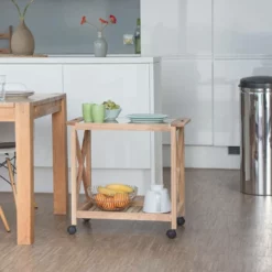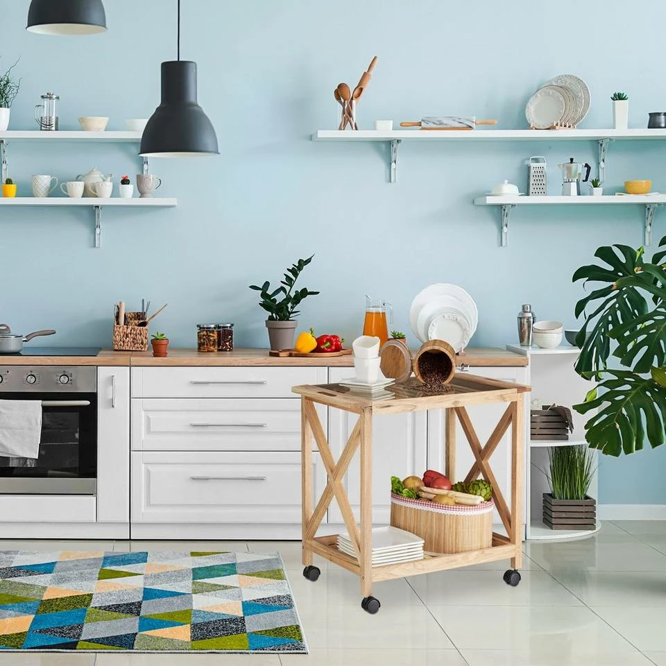 Mobiler Küchenwagen aus Holz Gewürze, Gemüse und weitere Zutaten haben Sie mit dem mobilen Küchenwagen aus Holz immer griffbereit. Der klassische Küchentrolley aus schönem Walnussholz schafft zusätzlichen Stauraum dank 2 großer Ablageflächen. Gleichzeitig kann der Rollwagen bei Nichtgebrauch einfach in einer Nische verstaut werden. Die 360 Grad drehbaren Räder ermöglichen ein leichtes Manövrieren. Der Küchenwagen kommt mit einer Glasplatte, die sich hervorragend zum Servieren eignet. Der Allzweckwagen kann aber auch im Bad zur Aufbewahrung von Putzmitteln genutzt werden.