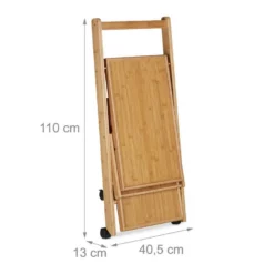 Klappbarer Rollwagen mit 2 rechteckigen Arbeitsplatten Der Rollwagen ist aus natürlich gemasertem Bambus hergestellt, der sich optisch in jede Einrichtung erstklassig einfügt. Er ist allerdings nicht nur eine Freude fürs Auge, sondern lässt sich auf sehr vielfältige Weise nutzen. Der Allzweckwagen punktet in Ihrem Haushalt, sei es als fahrbarer Beistelltisch im Wohnzimmer, als geschmeidig und fast lautlos über den Boden gleitender Servierwagen im Esszimmer oder als Teewagen auf dem Balkon. Doch selbst der größte Allrounder hat irgendwann seinen Dienst erledigt. Dann können Sie den Küchenwagen mit wenigen Handgriffen zusammenklappen und platzsparend verstauen.