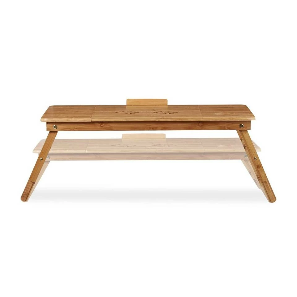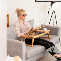 Laptoptisch XL aus Bambus Sie wollen entspannt vom Sofa aus arbeiten oder einfach nur mit Ihren Freunden chatten? Mit dem geräumigen Laptoptisch können im Park, auf dem Sofa oder im Bett arbeiten ohne nur in die Nähe des ungeliebten Schreibtisches zu kommen. Der geräumige Knietisch, weiß durch seine Mobilität zu überzeugen und bietet gleichzeitig Platz für Laptops mit einer Größe von bis zu 17 Zoll. Durch die verstellbare Höhe und einen veränderbaren Neigungswinkel, lässt sich der Tisch auf die ideale Arbeitsposition anpassen.