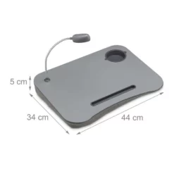 - Basics des Lapdesks: Maße Gesamt HxBxT: ca. 5 x 44 x 34 cm – Ablagefläche für Notebooks, Tablet, Bücher in ca. 20 x 30 cm – Batteriebetrieben mit 3x LR44 Knopfzelle