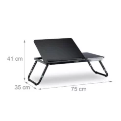 Praktischer Laptoptisch fürs Bett Schützen Sie Ihr Notebook vor Überhitzung im Bett mit dem praktischen Laptoptisch. Das schwarze Betttablett bietet zusätzlich Abstellmöglichkeiten für Getränke oder Snacks. Durch höhenverstellbare Füße und einer Leseklappe mit 4 Neigungen ist eine bequeme Sitzhaltung garantiert. Verwenden Sie den Laptoptisch im Bett oder auf der Couch, als Arbeitsfläche oder Frühstückstablett. Der Lapdesk ist klappbar und lässt sich so überall verstauen.