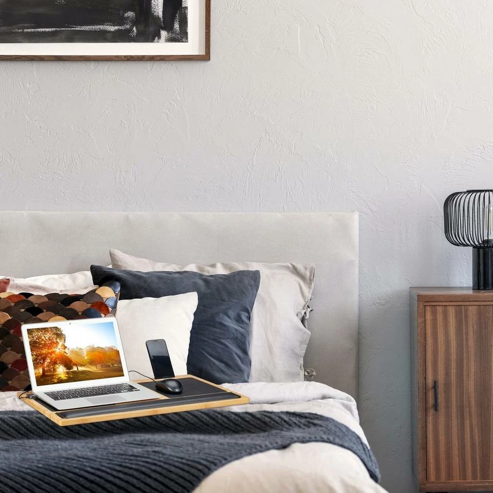 - Funktional: Laptoptisch mit Extras – Halterung für Smartphone und Kissen zur weichen Ablage der Hand