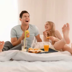 Praktisches Knietablett für Laptops Völlig egal ob Rechtshänder oder Linkshänder – dank zweier integrierter Mousepads können Sie mit dem Laptoptisch ganz nach persönlicher Präferenz arbeiten. Damit es dabei nicht unbequem wird, ist ein weiches Polsterkissen für die Handgelenke in den Laptophalter eingearbeitet. Darüber hinaus punktet das praktische Knietablett mit einer Halterung für Tablet und Smartphone. Und wenn sie den Notebooktisch einmal nicht als Arbeitsunterlage benötigen, können Sie ihn einfach umdrehen und als Betttablett für ein entspanntes Frühstück verwenden.